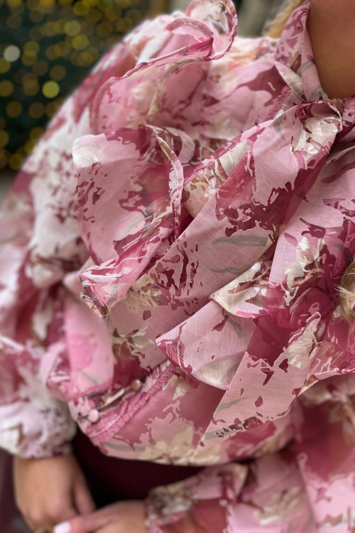 Chique, feestelijke blouse in maat SM en ML. Wijder vallend model met mooie details.