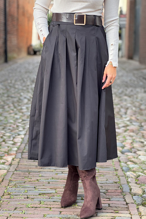 Mooie wijde rok met ingestikte plooien. De riem wordt erbij geleverd.