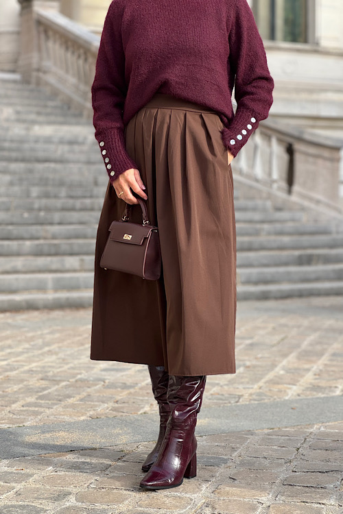 Liesbeth is 173 cm en draagt maat S van de rok.