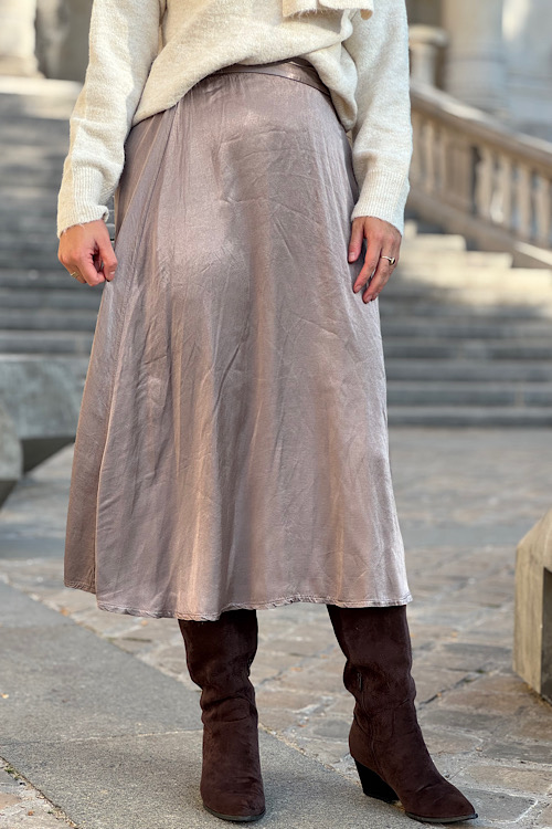Viscose satijnen rok Rosanne taupe