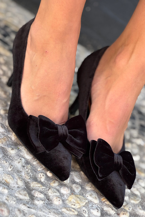 Zwart fluwelen pump met strik